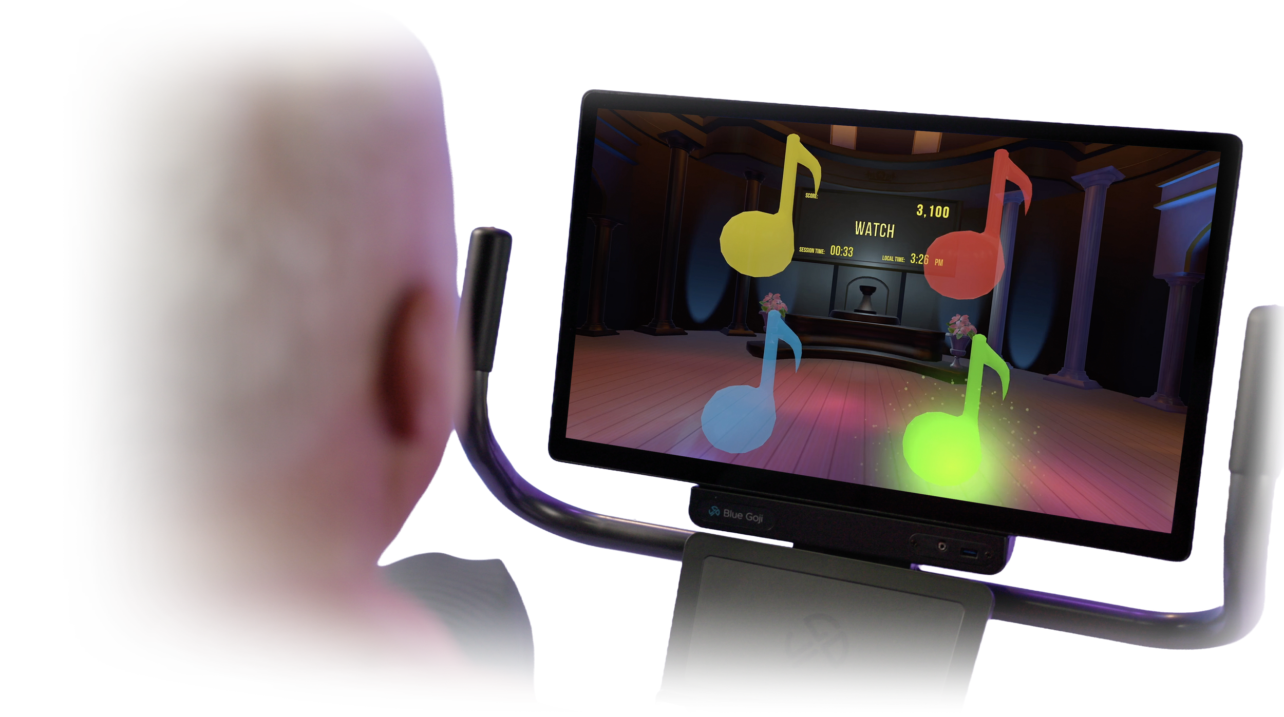 GojiCare® includes a curated set of games designed specifically for brain health training during exercise. These games have more simple designs and objectives than Blue Goji’s standard GojiPlay® cardiogaming software.