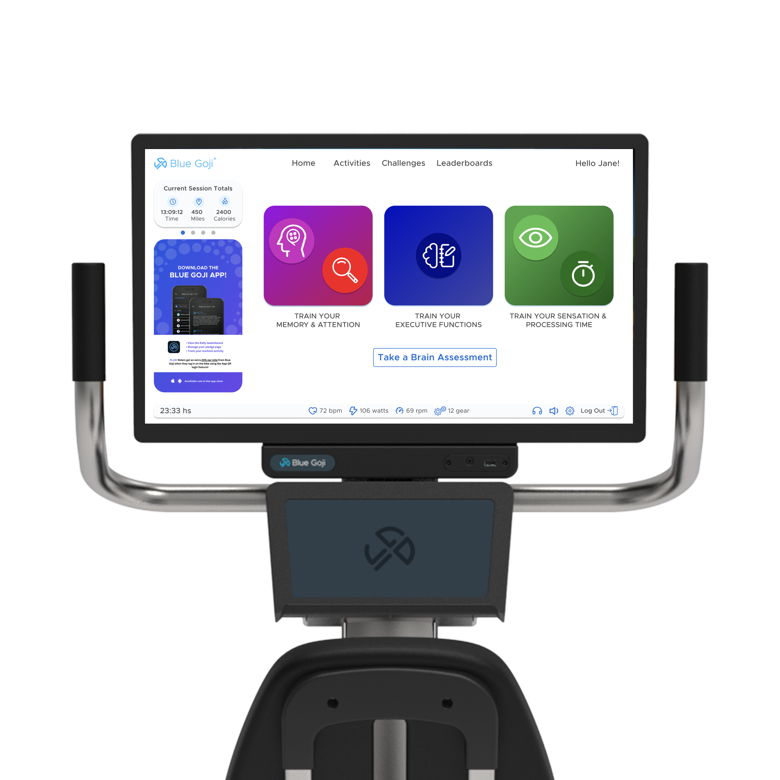 GojiCare is Blue Goji’s advanced cardiogaming software designed to make brain health measurable, trainable, and engaging. By combining physical exercise with cognitive challenges, GojiCare helps organizations deliver powerful brain + body wellness programs while providing deep insights into rider performance. Built for fitness centers, senior living communities, schools and sports training, GojiCare transforms cardio workouts into meaningful brain training sessions.