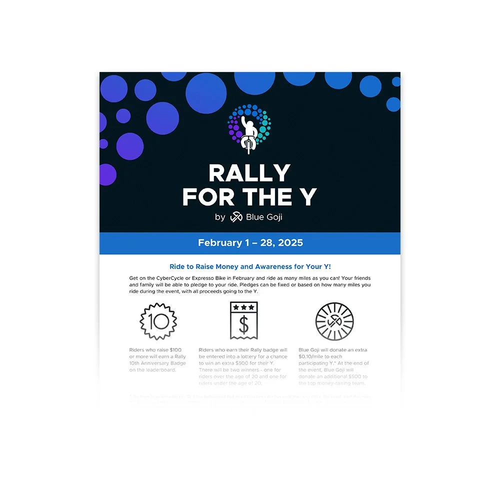 This is a 24x36 poster you can use as a showcase for all your Rally riders! Sign names directly to the blank spaces, or fill out a Rally Rider Card and see how many you can collect during the month. to keep track of who you’re riding for, your team totals, your fundraising goal.